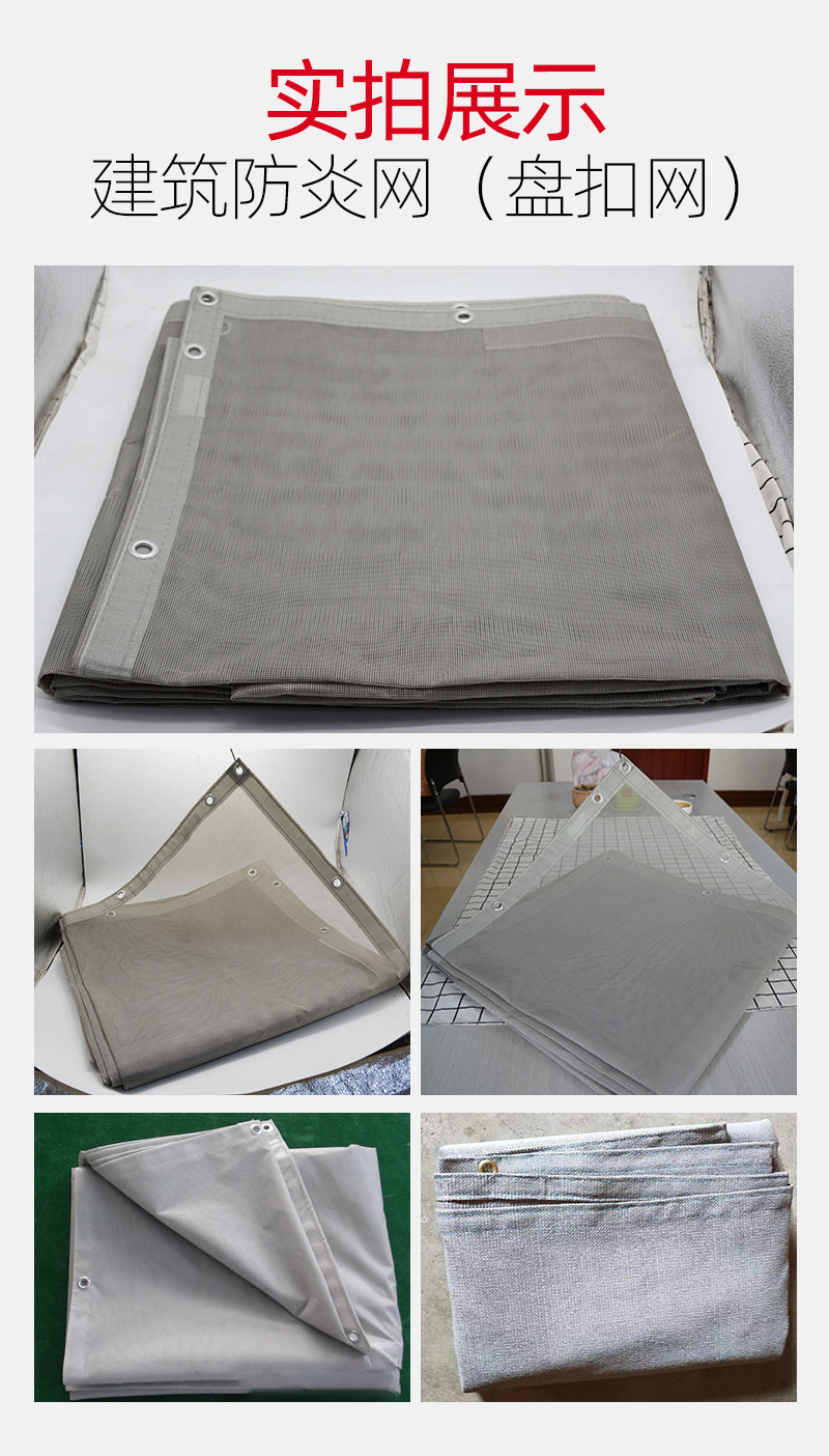 防炎网是采用高强涤纶纱制成经编网,经浸渍PVC糊状树脂后,高温加热、高压冲孔,冷却后制成网眼布再经过包边、打扣等工艺加工成各种尺寸的成品。定制内容:工厂生产,价格优惠...